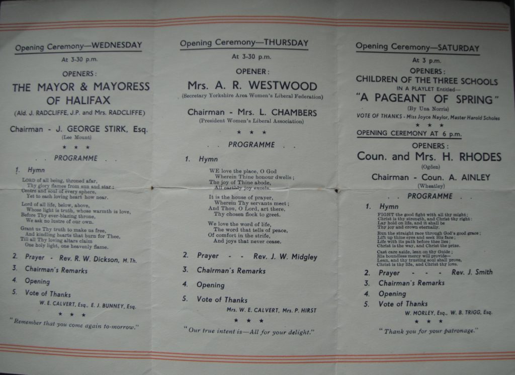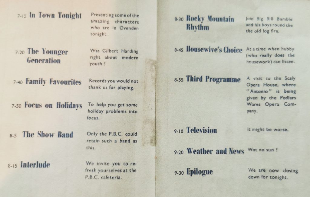 The complete programme. Maybe Friday was missed out because they all got paid and would be out boozing!!